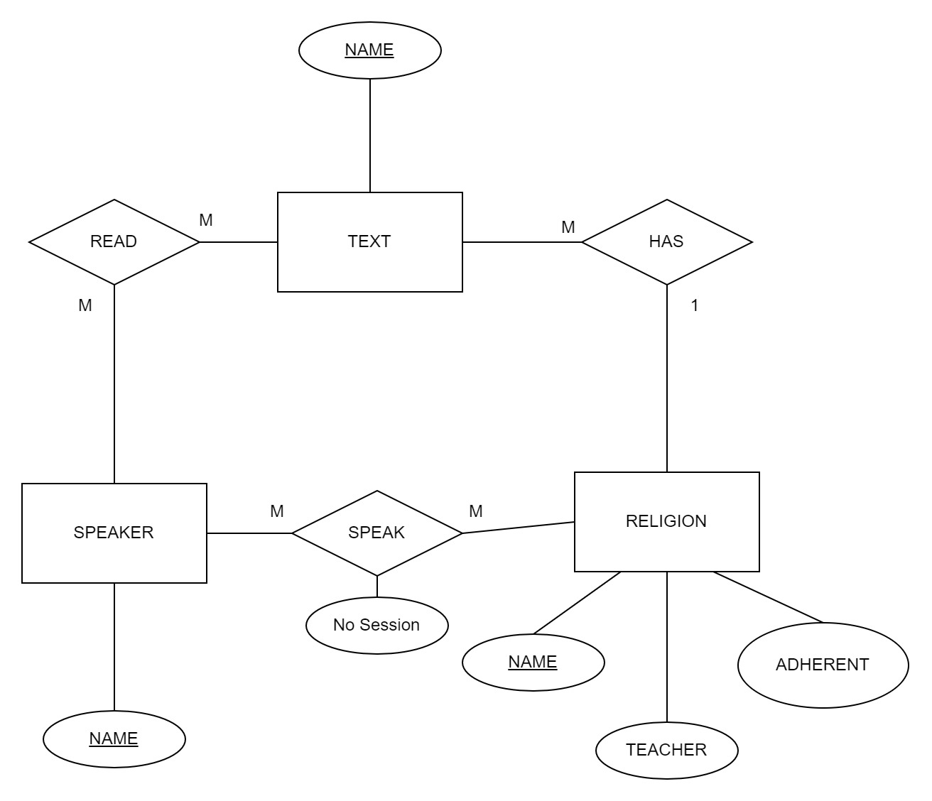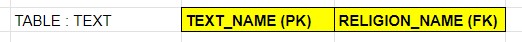 จากตัวอย่างเราจะเห็น Relationship : HAS ที่เกิดจาก Entity : RELIGION กับ Entity : TEXT เป็น 1 to M ซึ่งจะทำให้เราแก้ไข Table : TEXT เป็น