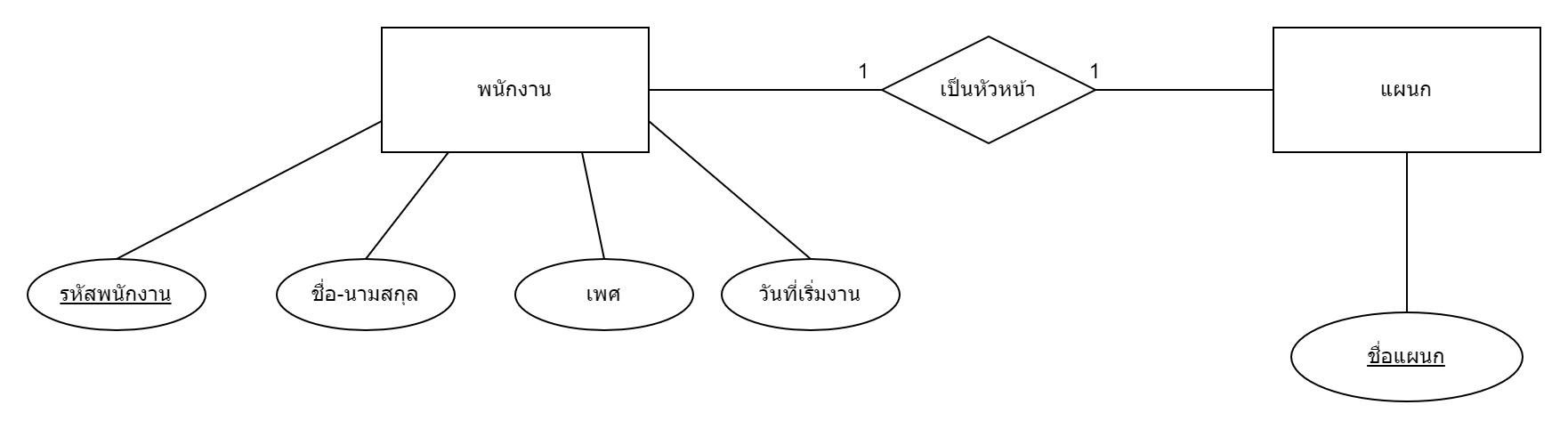 เนื่องจากความสัมพันธ์นี้ไม่มีตัวอย่างการประชุมวิชาการเลยขอเอาความสัมพันธ์ พนักงาน กับ แผนก มาเป็นตัวอย่าง