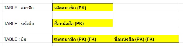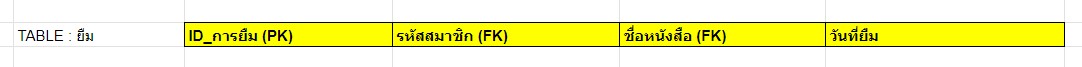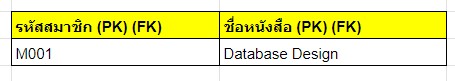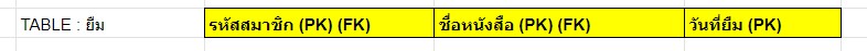 โดย Primary key จะกลายเป็น ID_การยืม ส่วน Primary key เก่า 3 Attribute จะกลายเป็น Unique Key แทน